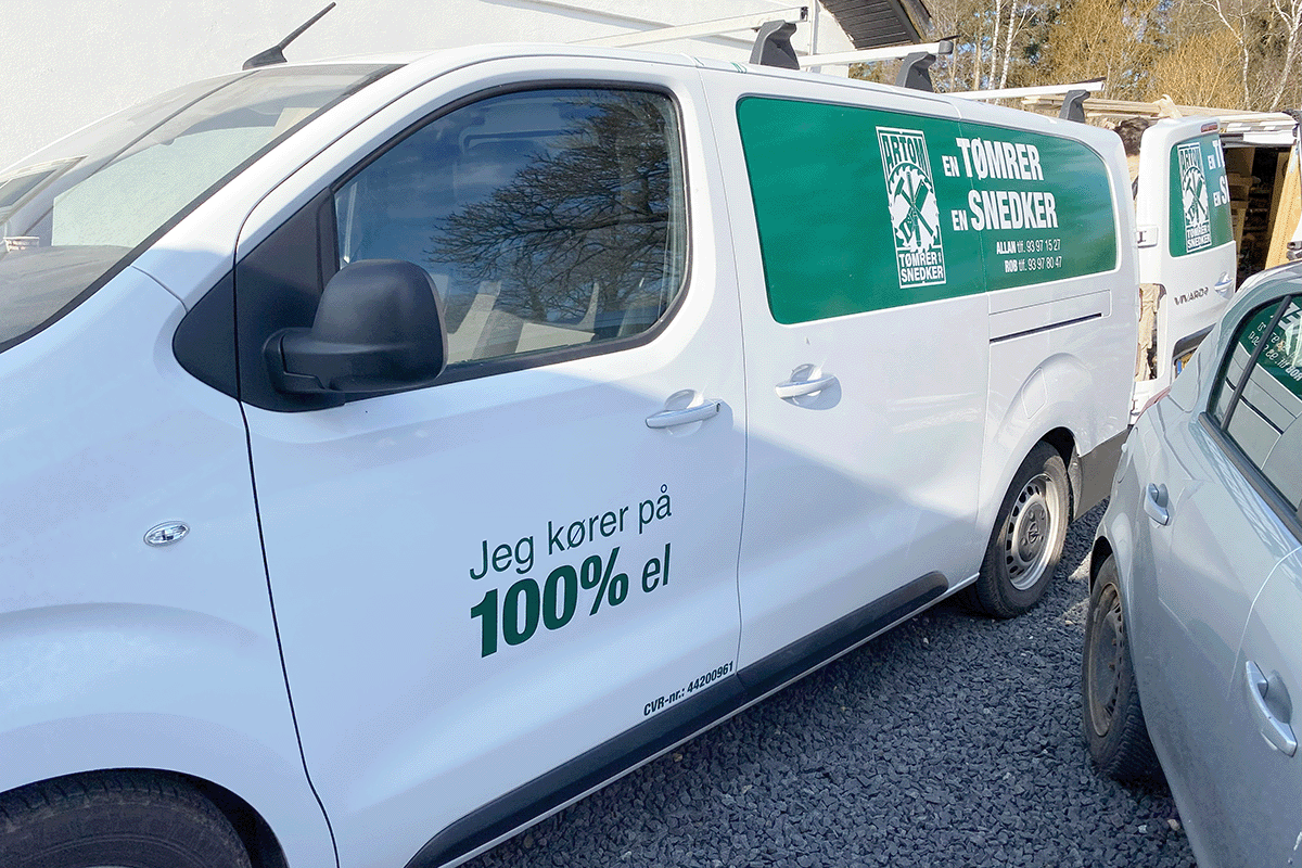 ”For vores kunder er det klart noget, der gør os mere lækre og som de vægter i valget af håndværker. De andre håndværkere spørger ind til vores erfaringer. De er nok lidt bange for kapaciteten og om de kan nå at køre frem og tilbage uden at skulle lade. Det kan man godt. Vi har ingen problemer med at nå til København og tilbage igen – selv om vinteren,” fortæller Allan.