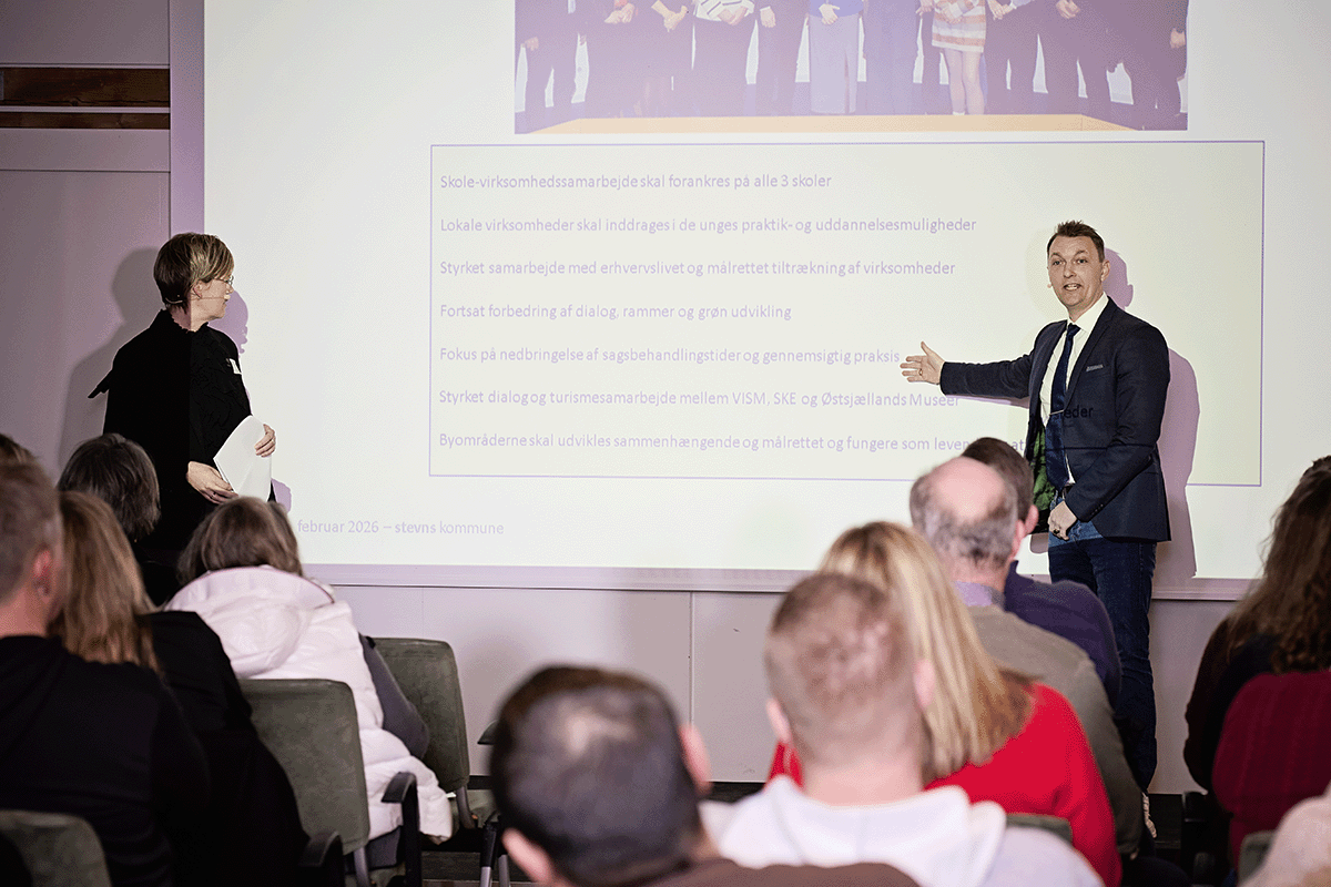 De gennemgik status og resultater for det erhvervspolitiske arbejde – og gjorde os alle lidt klogere på hvilken retning den nye kommunalbestyrelse sætter for Stevns. Særligt blev der lukket op for arbejdet med at skabe mere liv i bymidterne i Rødvig, Hårlev, Store Heddinge og Strøby Egede – også selvom der ikke alle steder er en decideret bymidte.
