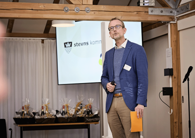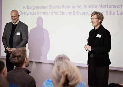 Aftenen startede med velkomst fra borgmester Anette Mortensen og formand i Stevns Erhverv, Jørgen Bille Larsen. Herefter blev scenen overladt til forretningsudvikler Peter Bisgaard, der uddelte prisen til Årets Iværksætter. Stort tillykke til Café Skov & Strand.